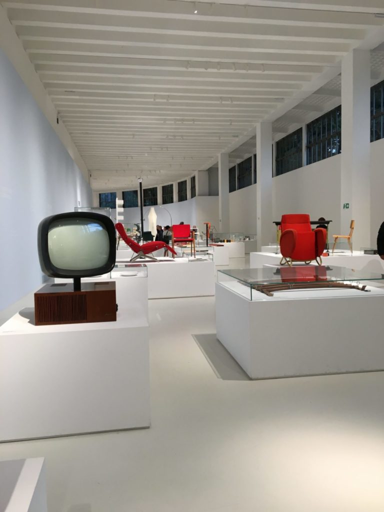 Ensuite, nous avons visité le musée du design italien. Des objets cultes des années 30 à aujourd’hui y sont présentés. Le plus : Le téléphone placé à côté de certains objets et qui nous permet d’en apprendre plus sur ces derniers fait partie de la collection ! (Marco Zanuso, Richard Sapper – Grillo Folding Telephone – 1966). La célèbre lampe Castiglioni a animé nos discussions du repas de midi sur le toit du musée. Nous y avons très bien mangé avec une vue imprenable sur la ville.