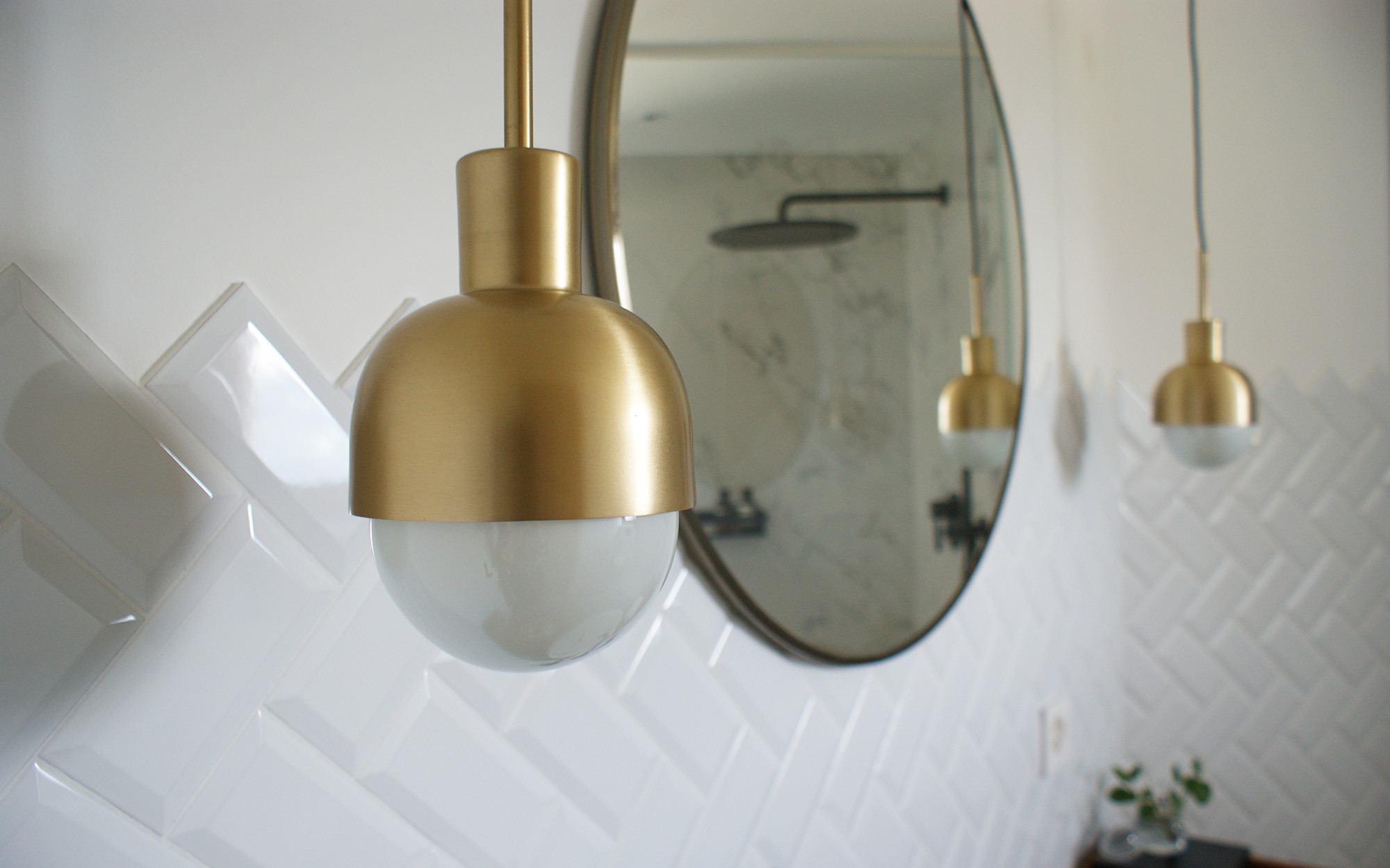 Notre fille a choisi une partie des matériaux parmi plusieurs sélections que nous avions faites pour les luminaires et le carrelage. Le grand miroir rond est un souhait de sa part. Nous avons parcouru plusieurs photos lors de nos recherches sur Pinterest et cela a été son premier souhait « avoir un grand miroir rond ». C’est chose faite.